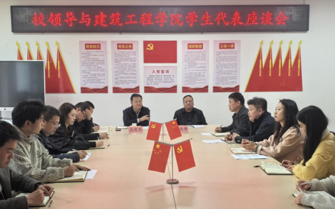 10月23日,建筑工程学院党总支召开学生代表座谈会。党委副书记高超杰出席会议,建筑工程学院党政领导班子、各部门负责人、全体辅导员及2024级、2025级学生代表参加会议。会议由建筑工程学院党总支书记乔改伟主持。